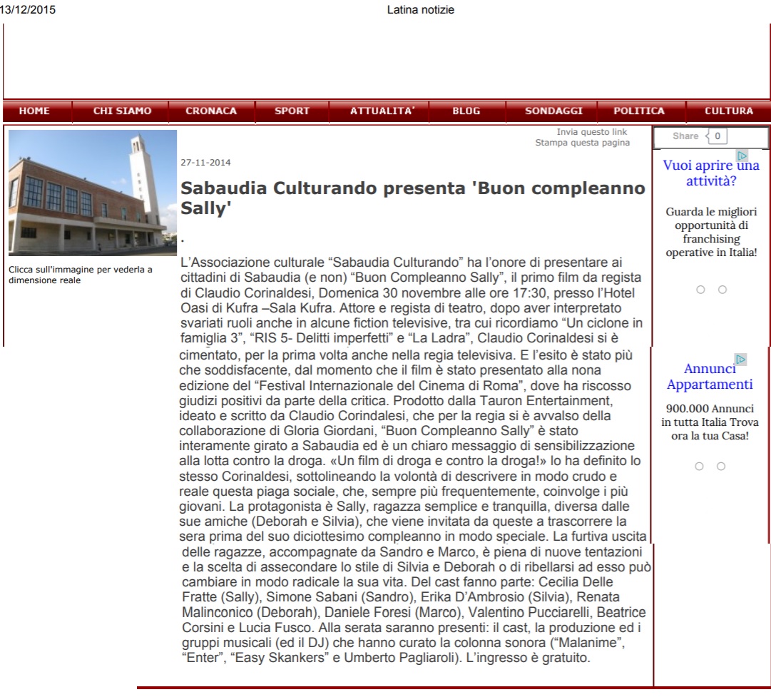 SABAUDIA CULTURANDO PRESENTA BUON COMPLEANNO SALLY LATINA NOTIZIE 27 NOVEMBRE 2014