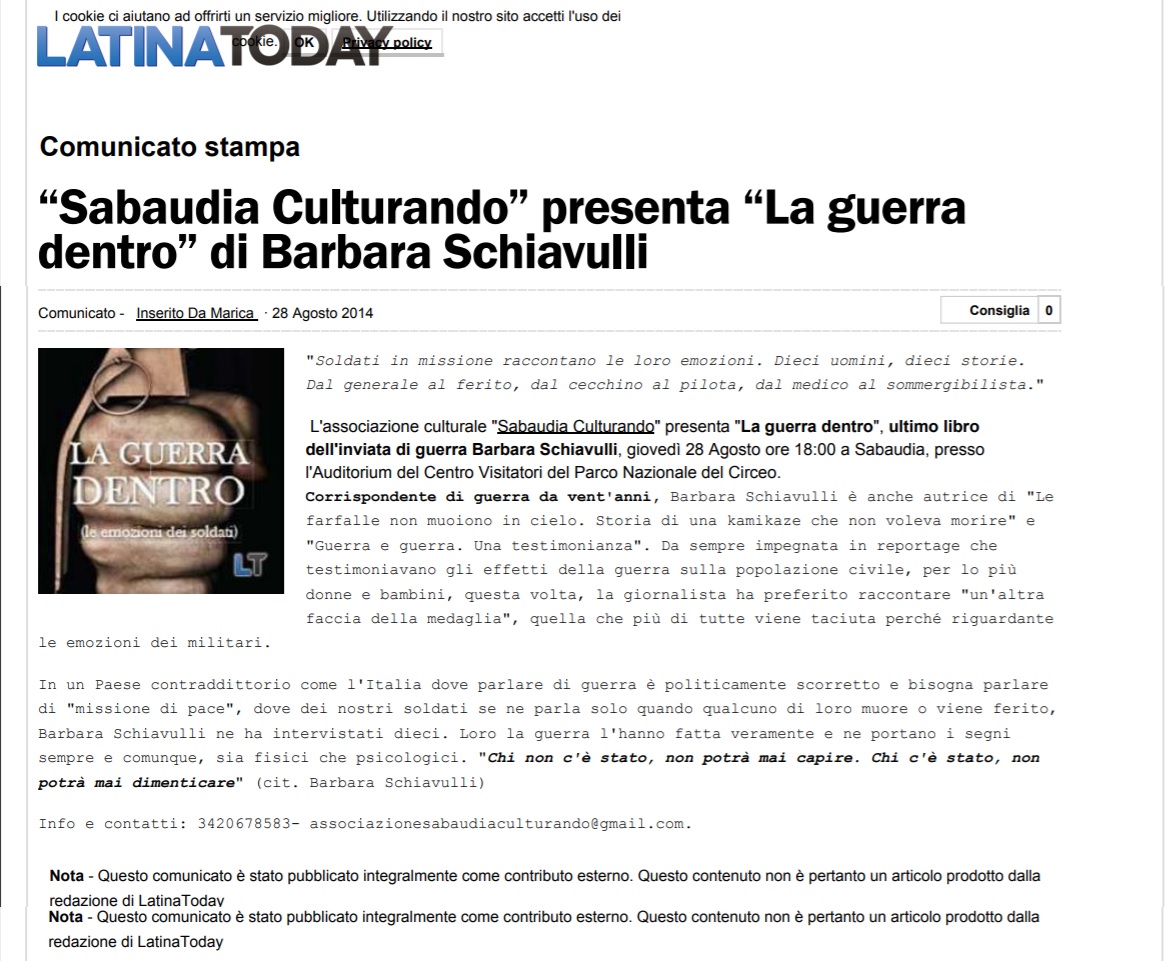 SABAUDIA CULTURANDO PRESENTA LA GUERRA DENTRO DI BARBARA SCHIAVULLI LATINA TODAY 28 AGOSTO 2014 Immagine 2 di 6