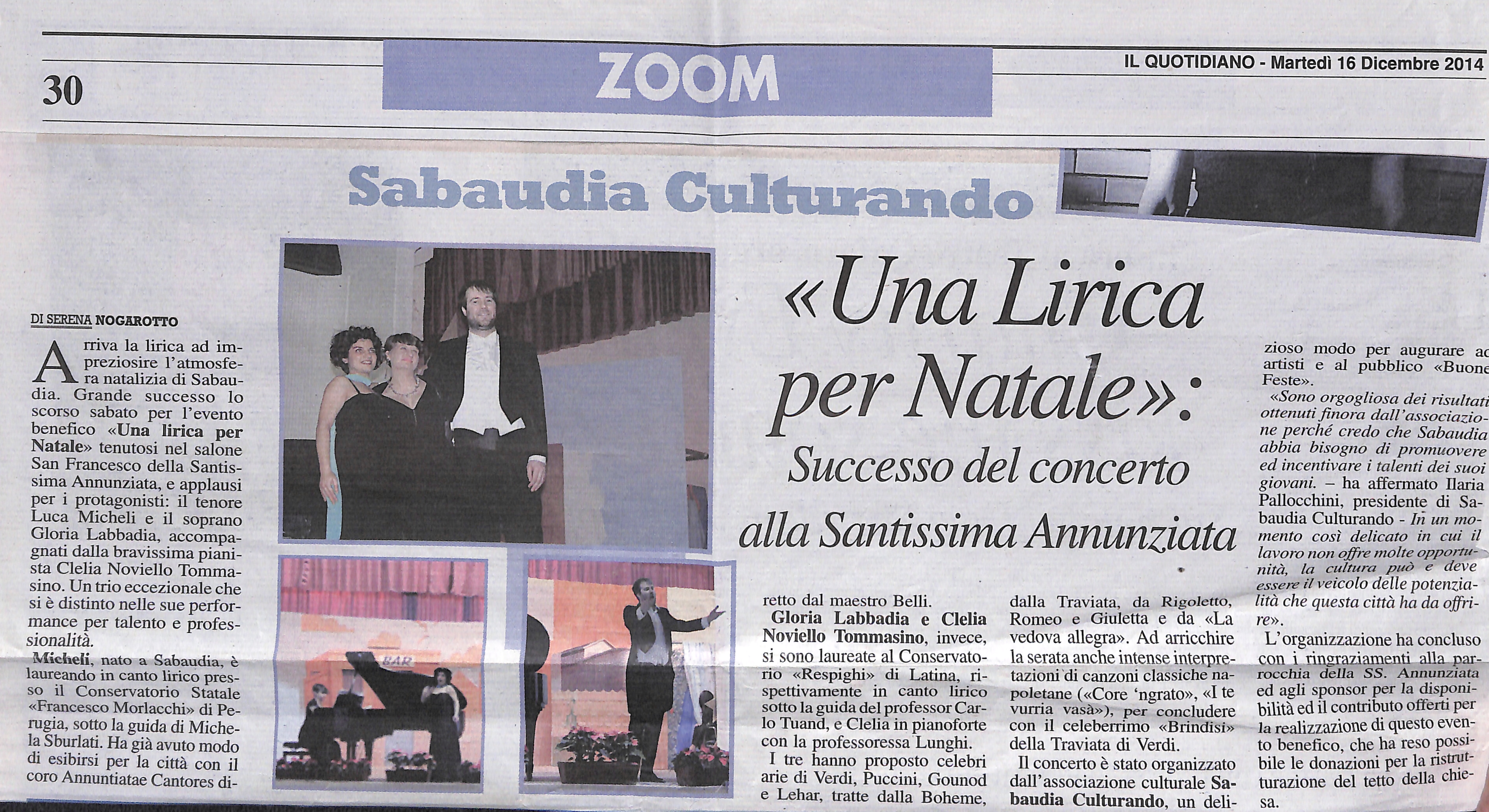 UNA_LIRICA_PER_NATALE IL QUOTIDIANO 16 DICEMBRE 2014
