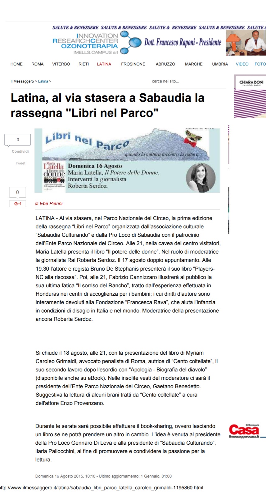 LATINA, AL VIA STASERA A SABAUDIA LA RASSEGNA LIBRI NEL PARCO IL MESSAGGERO 16 AGOSTO 2015 Immagine 3 di 5