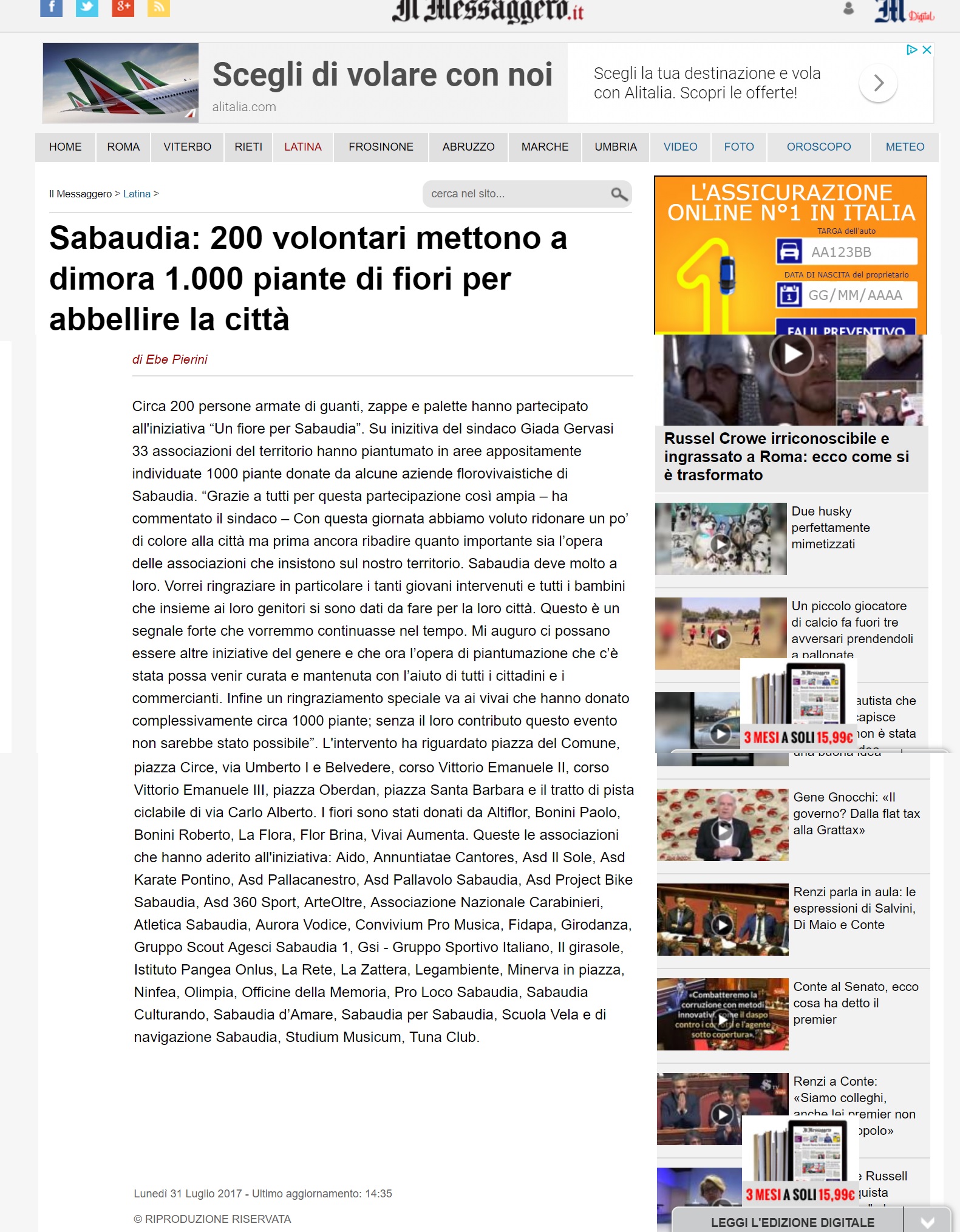 SABAUDIA 2000 VOLONTARI METTONO A DIMORA 1000 FIORI - IL MESSAGGERO 31 LUGLIO 2017